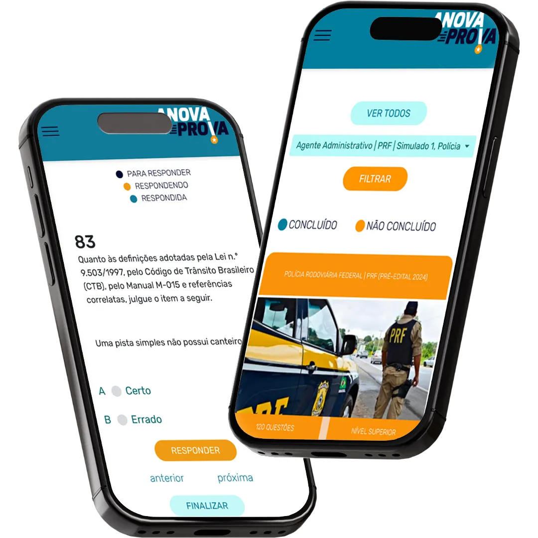 Além dos simulados existentes dentro do seu cursinho FOCUS, você também receberá o acesso durante 1 ano à plataforma ANOVA PROVA, na qual você NÃO PRECISARÁ ESCOLHER APENAS UM CARGO, você terá a livre disponibilidade para realizar simulados de QUALQUER CONCURSO.