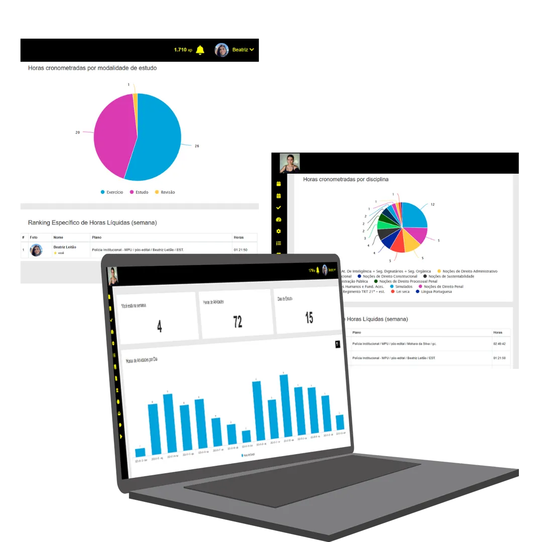 Todas as suas metas de estudo, revisões, exercícios, lei seca e redações estarão dispostas de forma estratégica dentro do seu plano de estudos. Imagina só não perder tempo montando cronograma porque já estará TUDO MASTIGADO pra você.