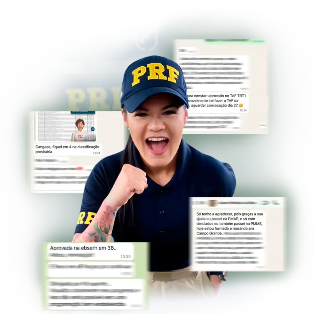 Aprovada nos concursos PM, PC, PRF e Polícia Judicial. Tenho formação em diversos cursos operacionais, como APH Tático, Estágio de Selva, Combate Veicular, Primeira Intervenção em Crises e Segurança Judiciária.